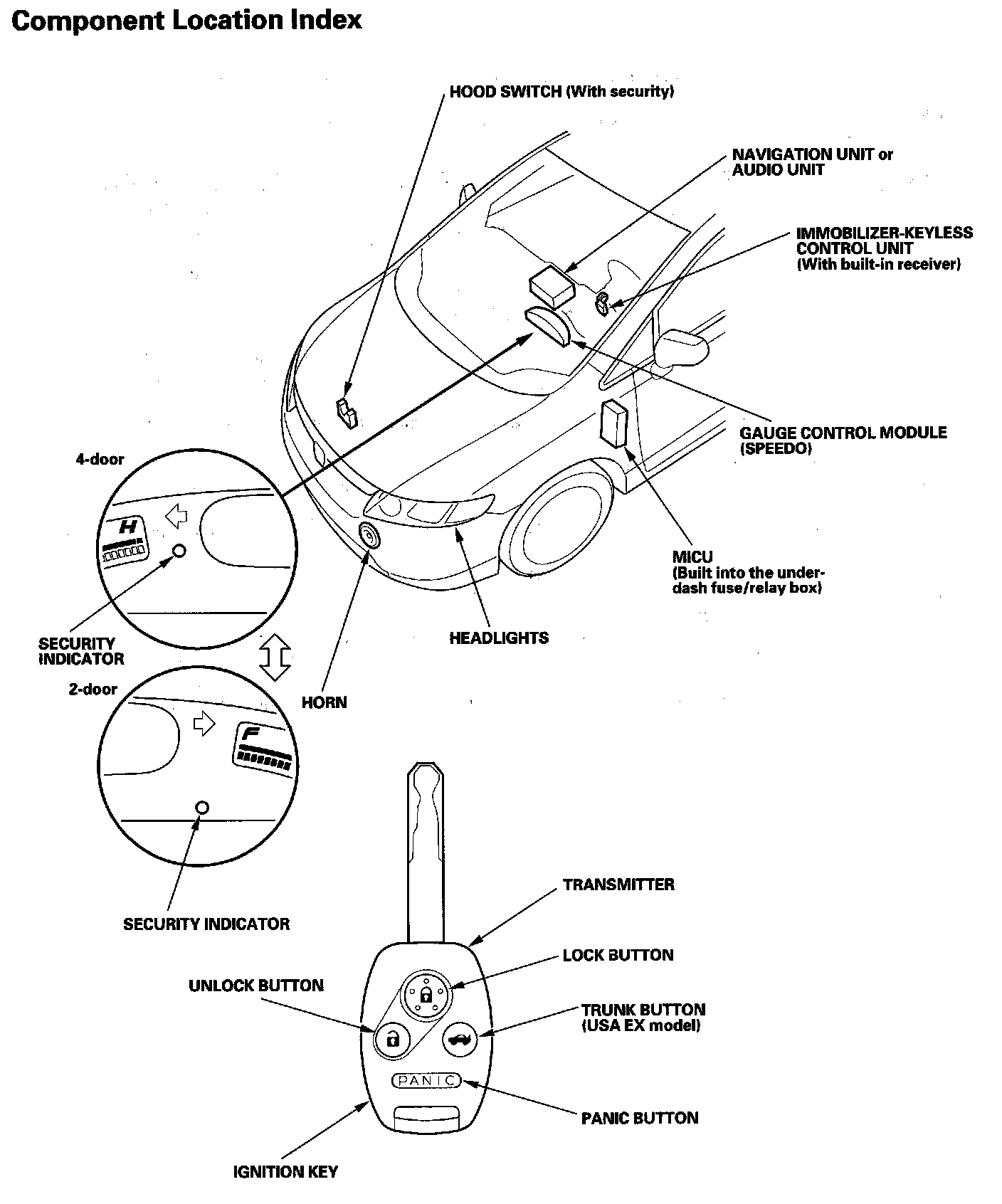 Keyless/Power Door Locks/Security System Component Location Index: