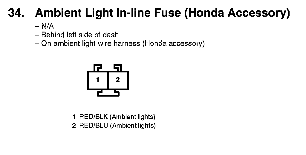 34. Ambient Light In-line Fuse (Honda Accessory):