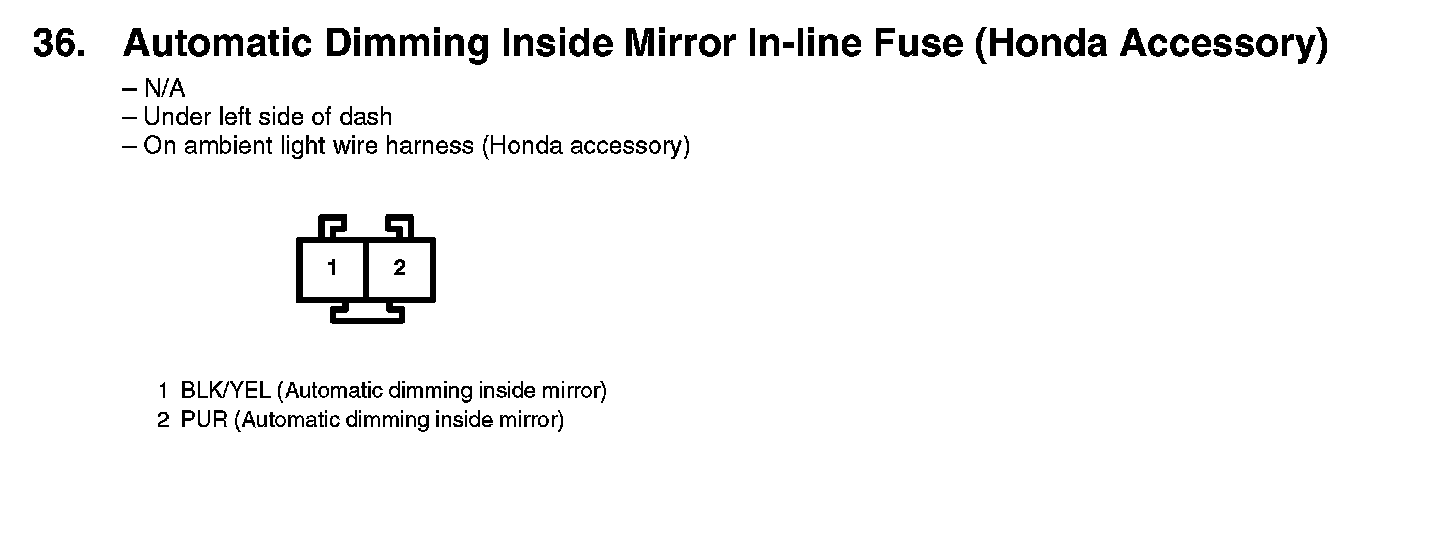 36. Automatic Dimming Inside Mirror In-line Fuse (Honda Accessory):