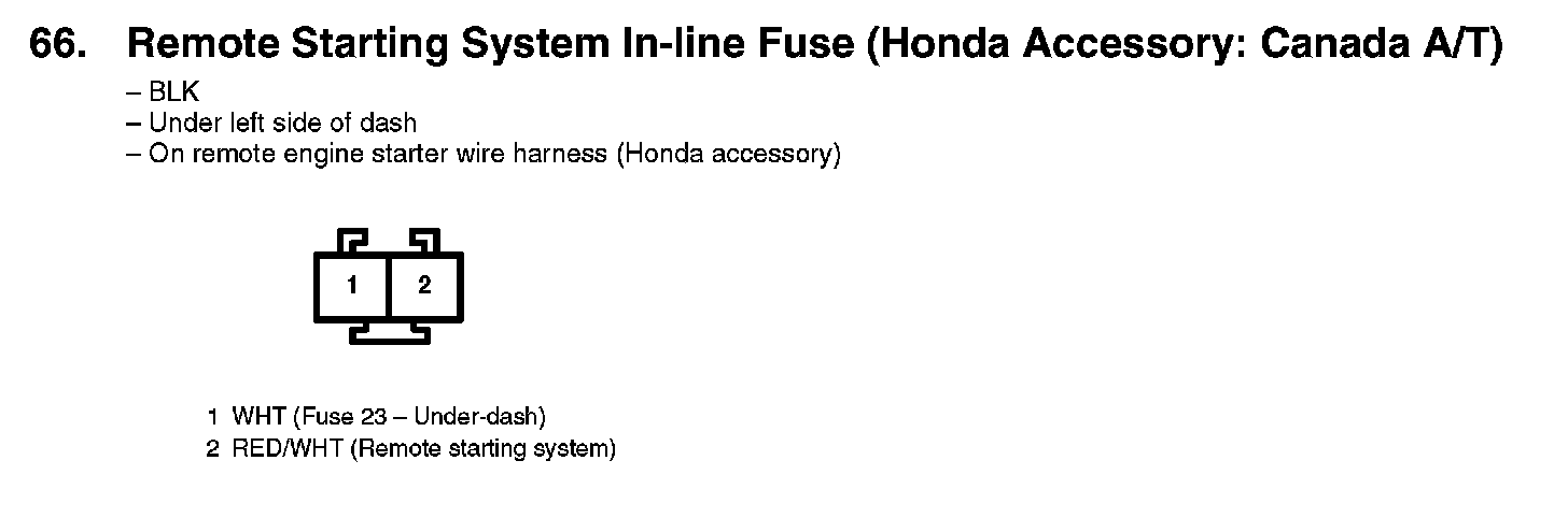 66. Remote Starting System In-line Fuse (Honda Accessory: Canada A/T):