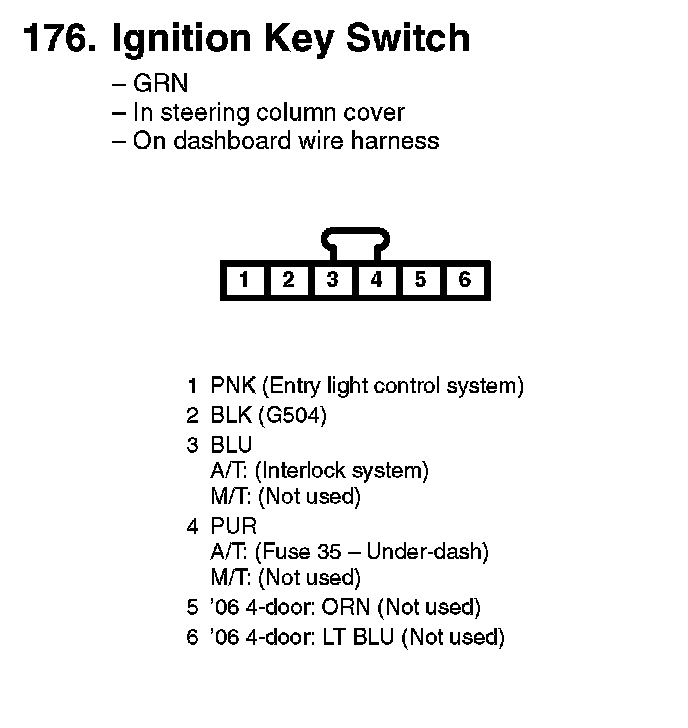 176. Ignition Key Switch: