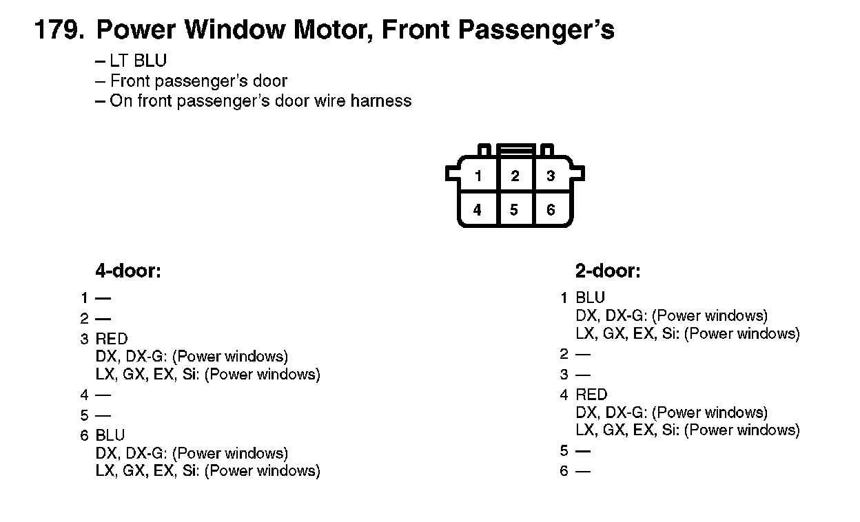179. Power Window Motor, Front Passenger's: