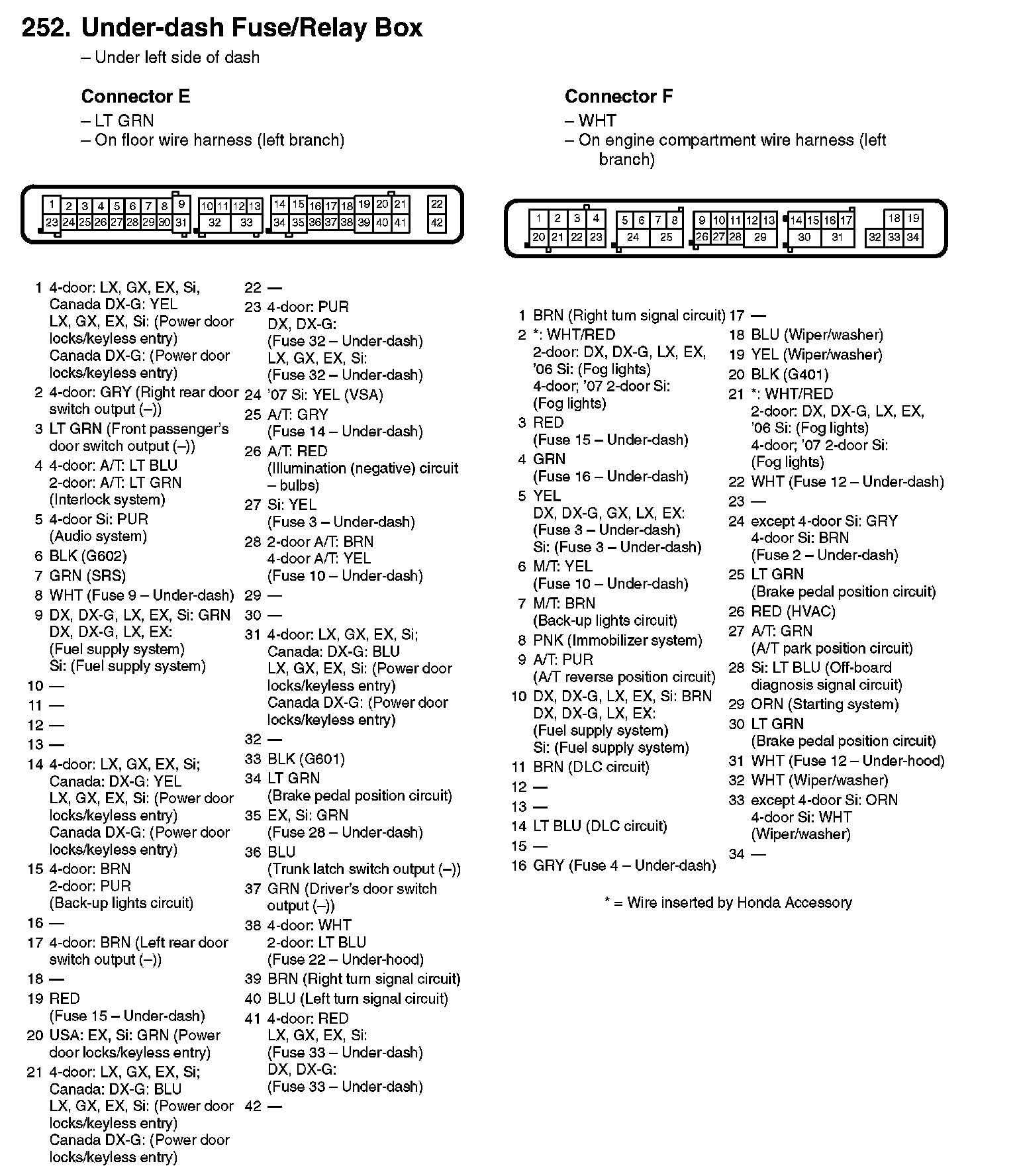 252. Under-dash Fuse/Relay Box: