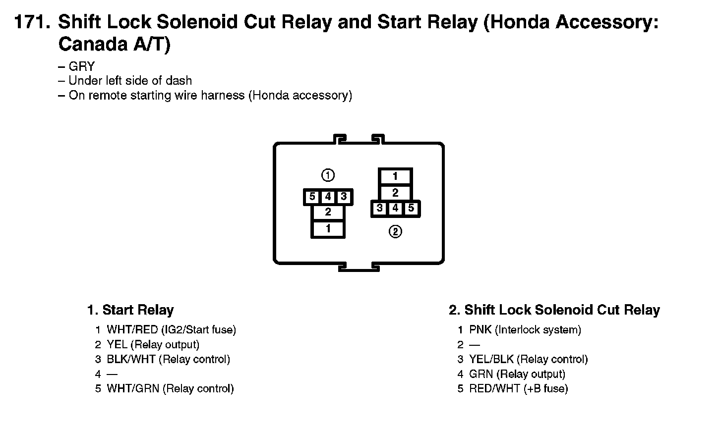 171. Shift Lock Solenoid Cut Relay And Start Relay (Honda Accessory: Canada A/T):