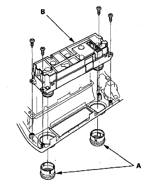 2. Remove the dials (A), the self-tapping screws, and the HVAC control unit (B).
