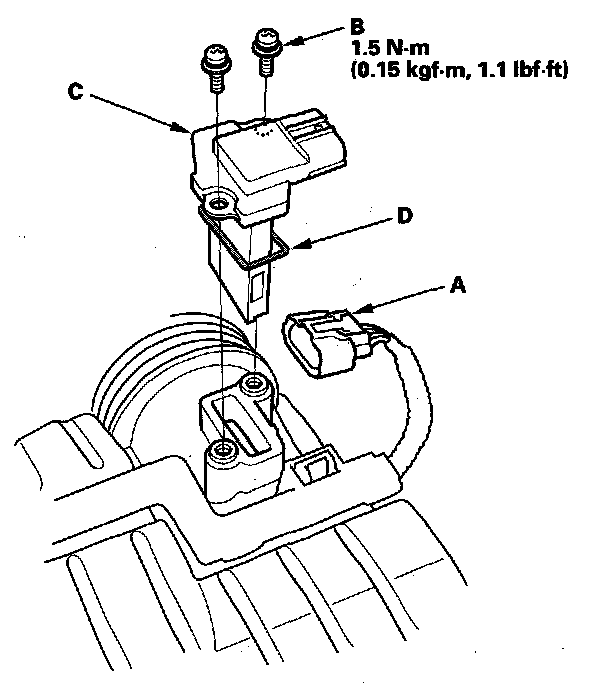 MAF Sensor/IAT Sensor Replacement1. Disconnect the MAF sensor/IAT sensor 5P connector (A).