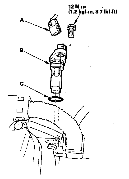 Install the parts in the reverse order of removal with a new O-ring (C).
