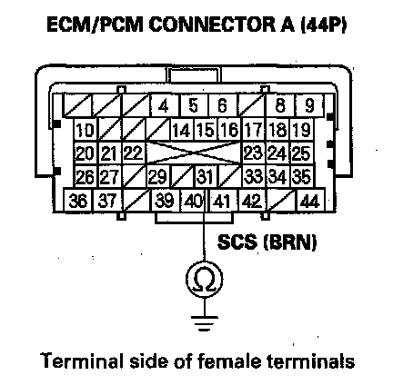 7. Check for continuity between ECM/PCM connector terminal A31 and body ground.