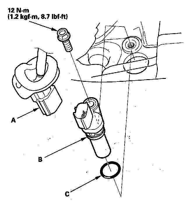 4. Install the parts in the reverse order of removal with a new O-ring (C).
