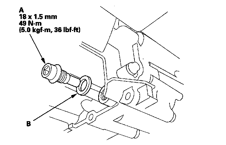 11. Reinstall the drain plug with a new sealing washer (B).