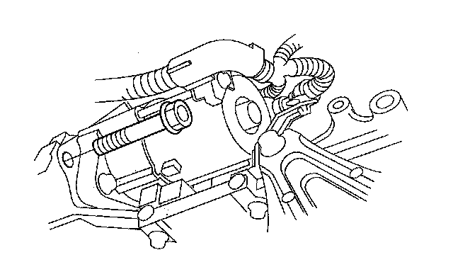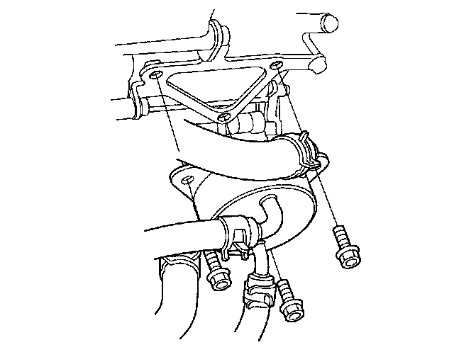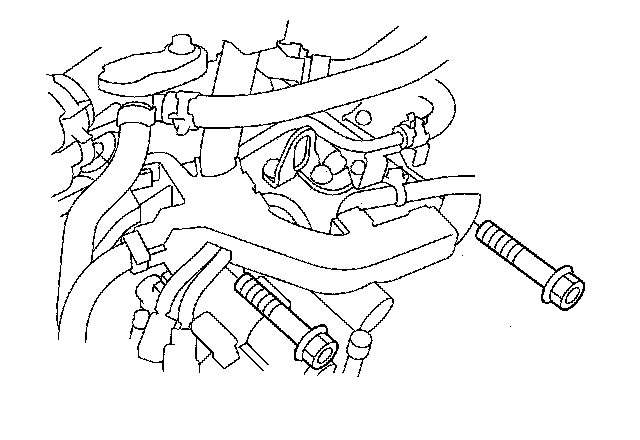 20. Remove the bolts securing the ATF warmer. Do not disconnect the ATF hoses and water by-pass hoses from the ATF warmer.