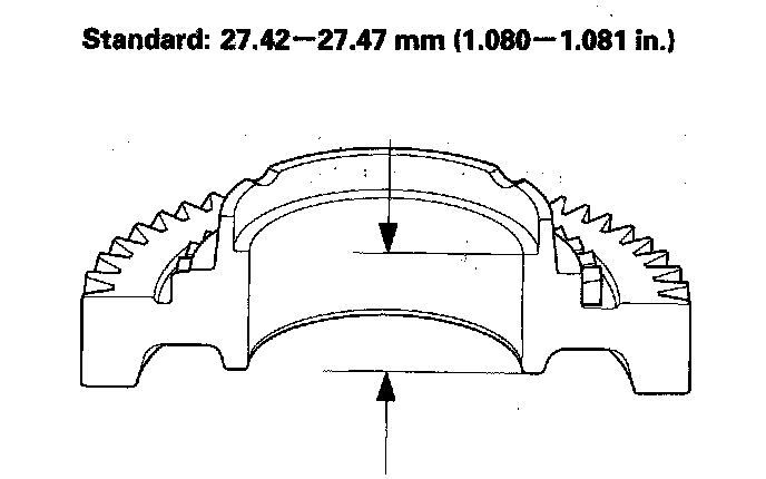 ^ If the thickness is less than the service limit, replace 2nd gear.