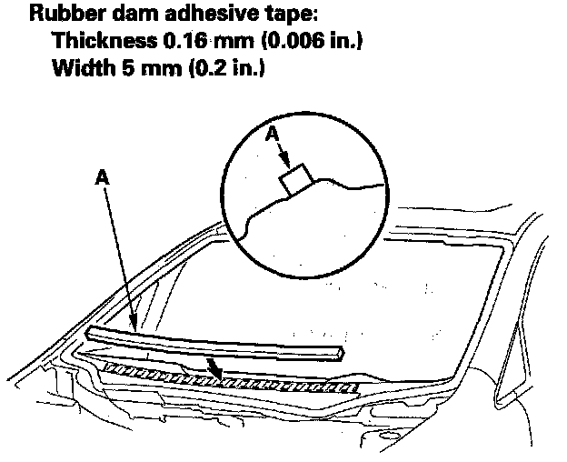 14. Attach the lower rubber dam (A) with body side adhesive tape to the body as shown. Do not peel the glass side adhesive backing.