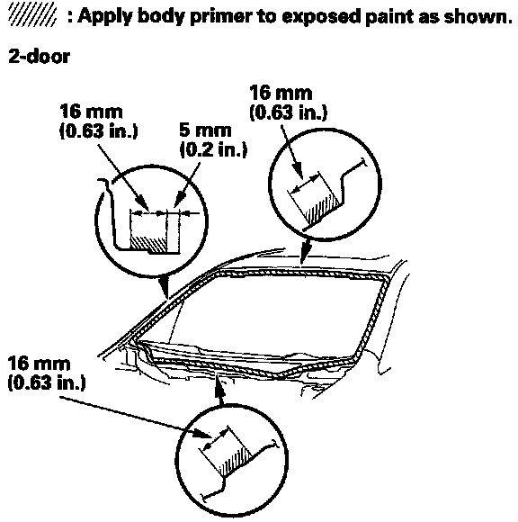 - Never touch the primed surfaces with your hands. If you do, the adhesive may not bond to the windshield properly, causing a leak after the windshield is installed.