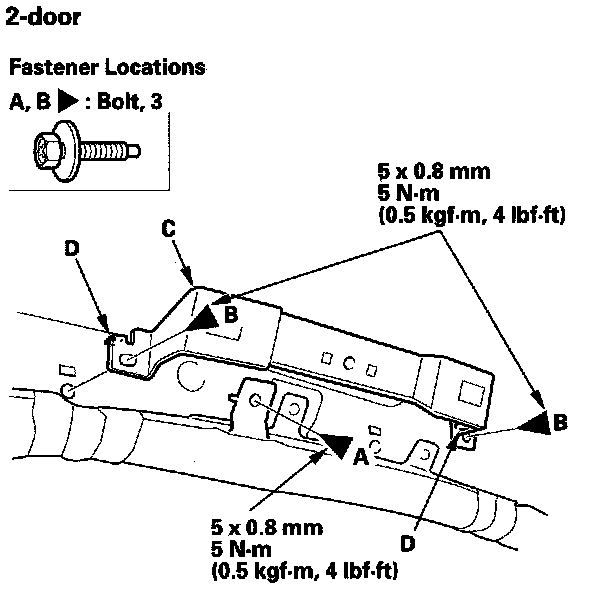2. 2-door: Release the clips (D).