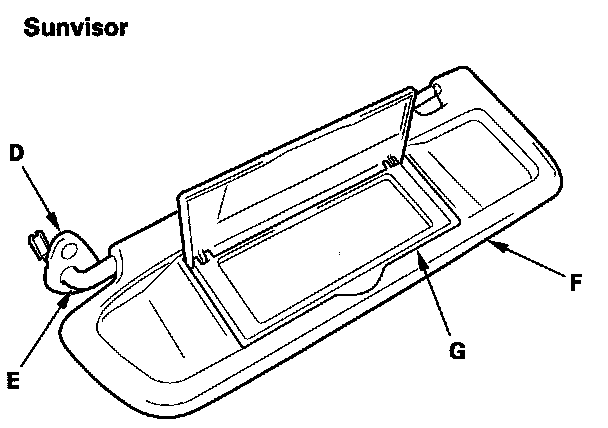 - Any cracks in the sunvisor base (F)
