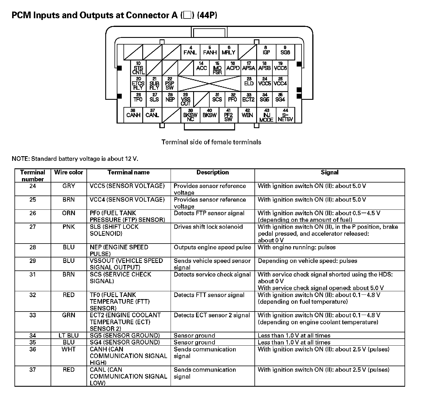 PCM Inputs And Outputs At Connector A (44P) (Part 1):