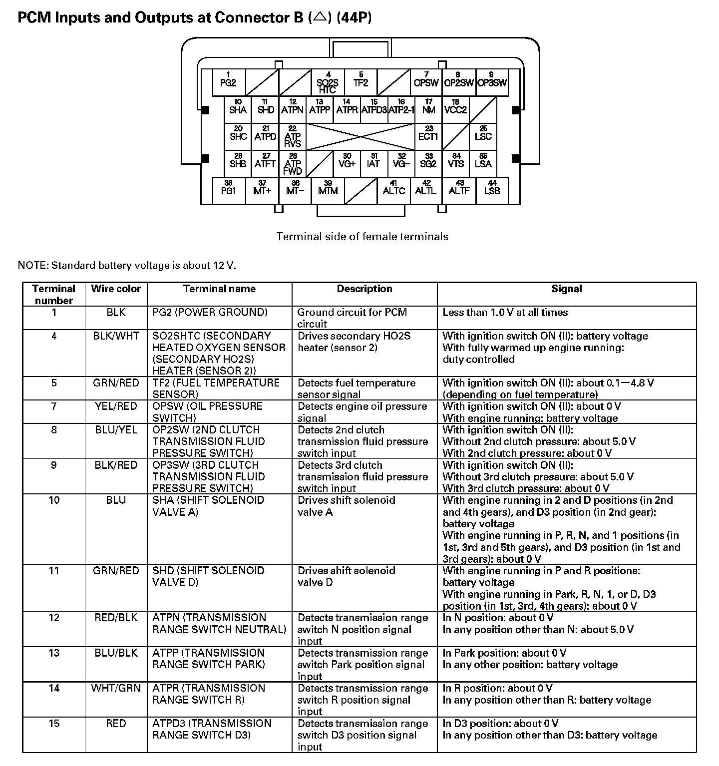 PCM Inputs And Outputs At Connector B (44P) (Part 2):
