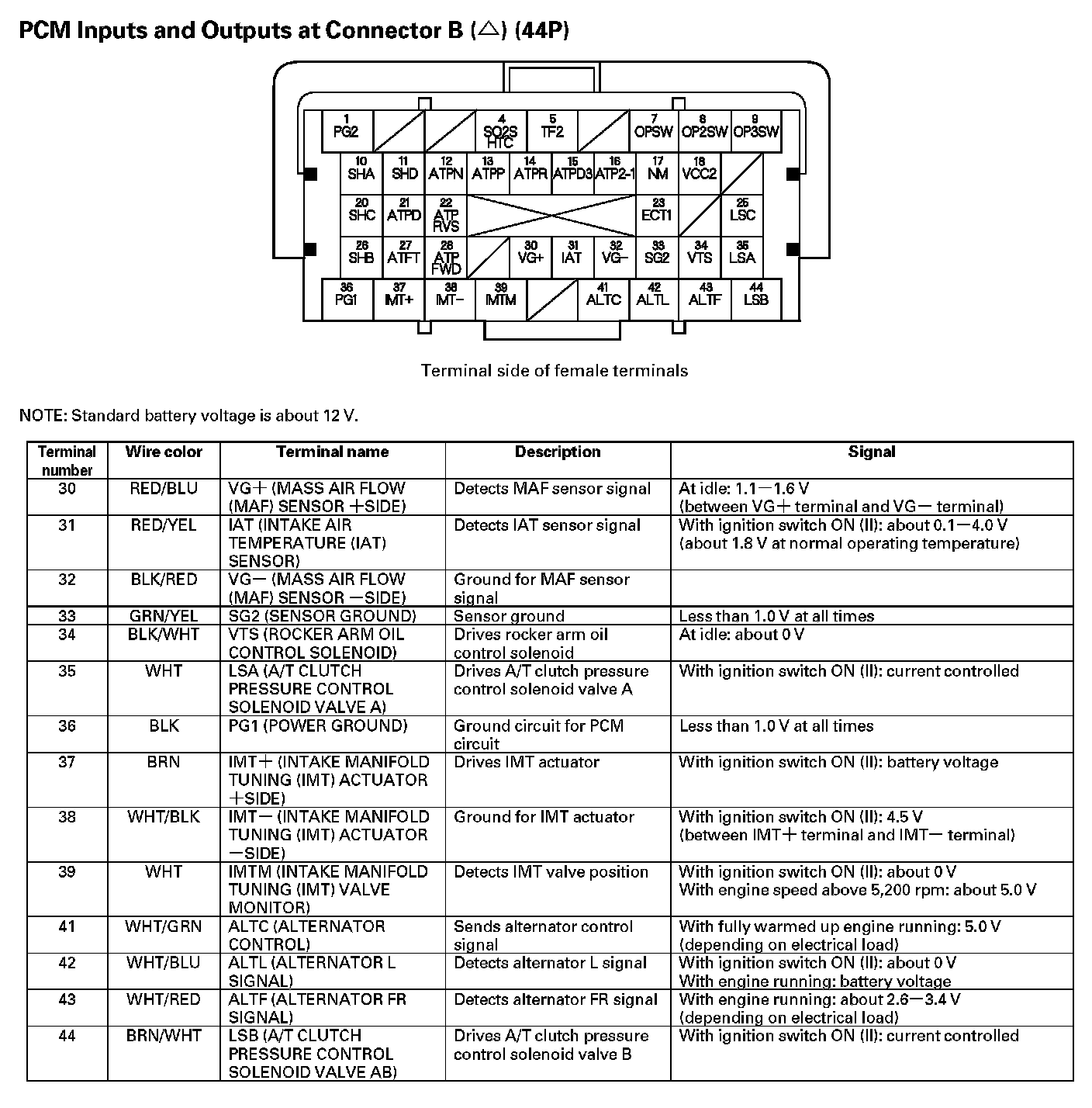 PCM Inputs And Outputs At Connector B (44P) (Part 1):