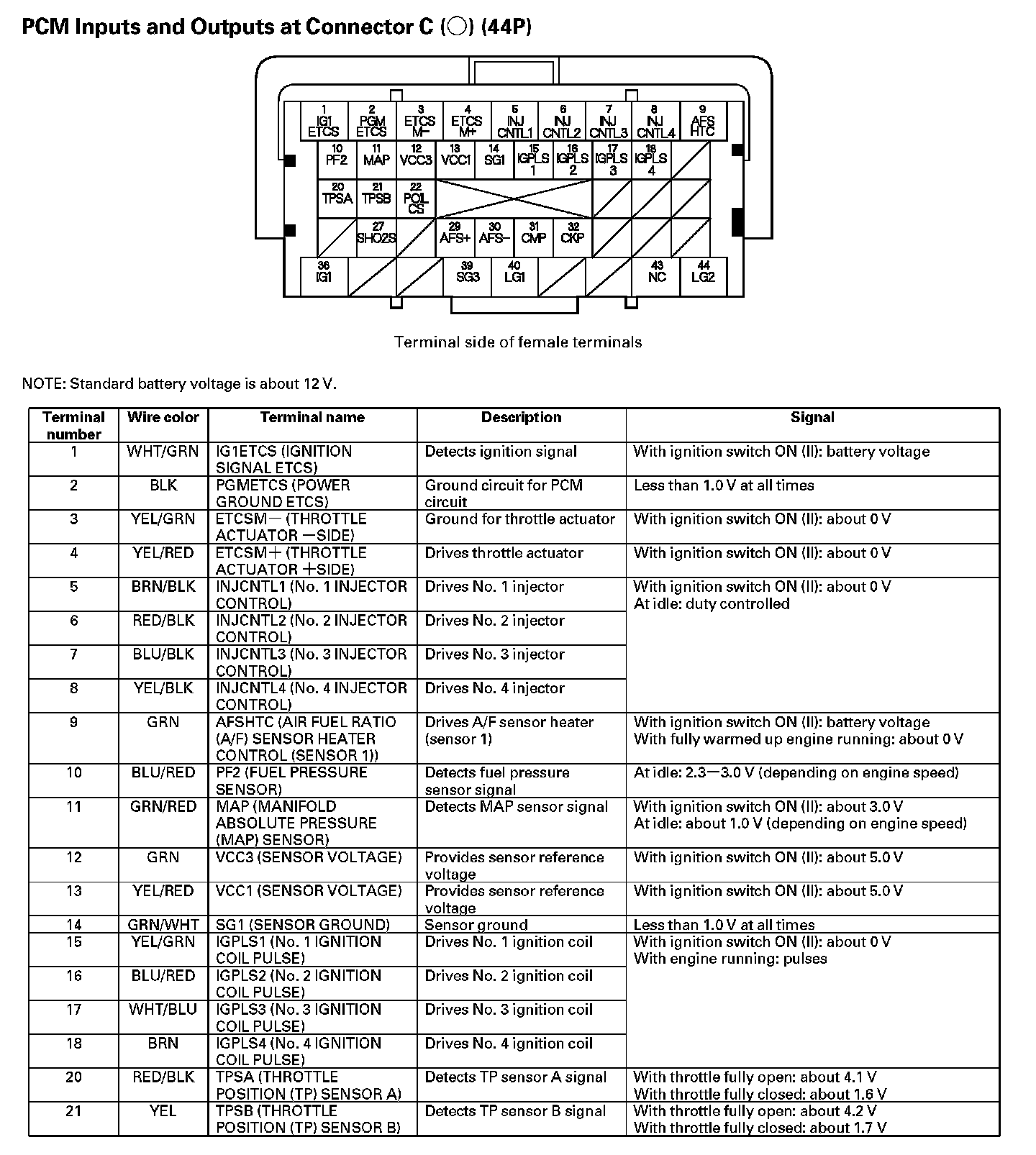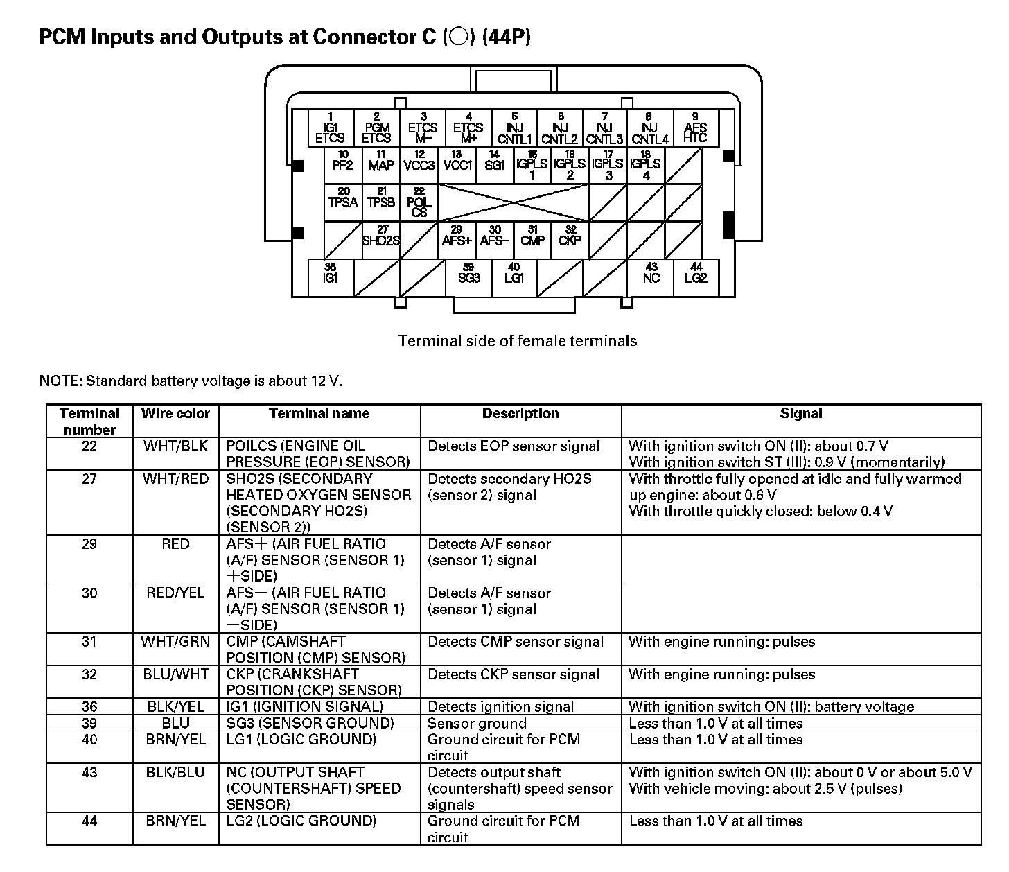 PCM Inputs And Outputs At Connector C (44P) (Part 1):