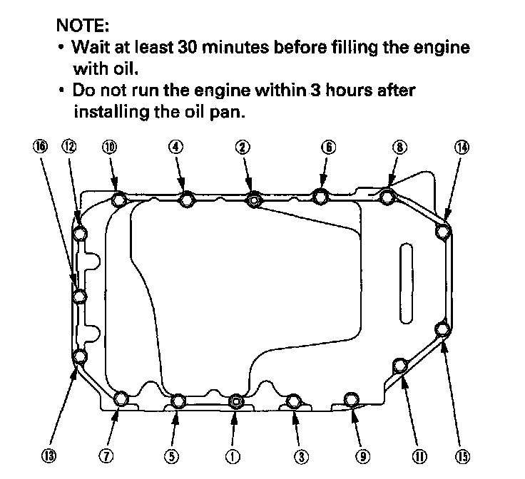 Tighten the bolts in three steps. In the final step, tighten all bolts, in sequence, to 12 Nm (1.2 kgf.m, 8.7 lbf-ft).