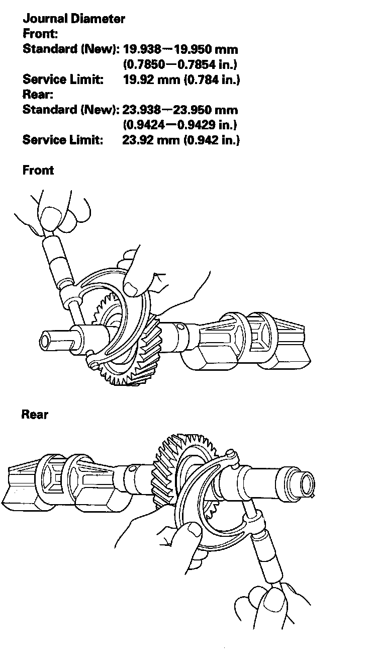 5. Measure the diameters of the No. 1 journals on the front balancer shaft and rear balancer shaft.
