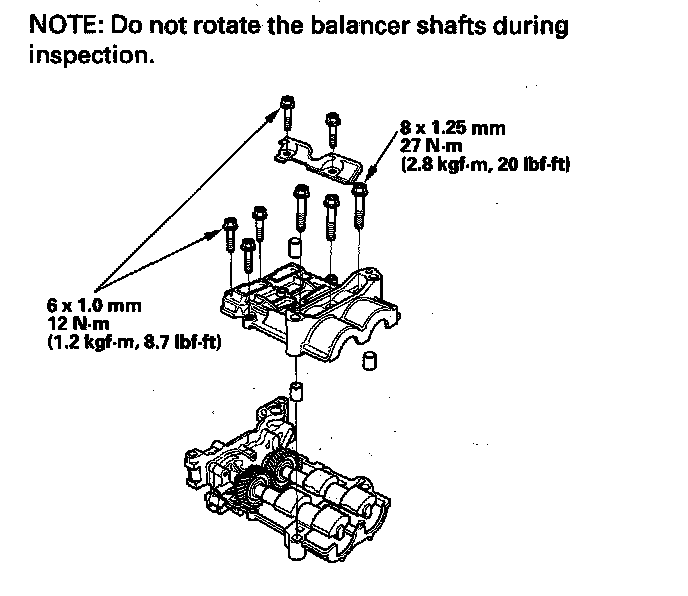 8. Reinstall the bearings and upper balancer shaft holder, then torque the bolts.
