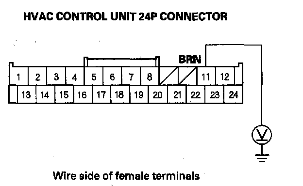 4. Measure the voltage between the HVAC control unit 24P connector No. 11 terminal and body ground.