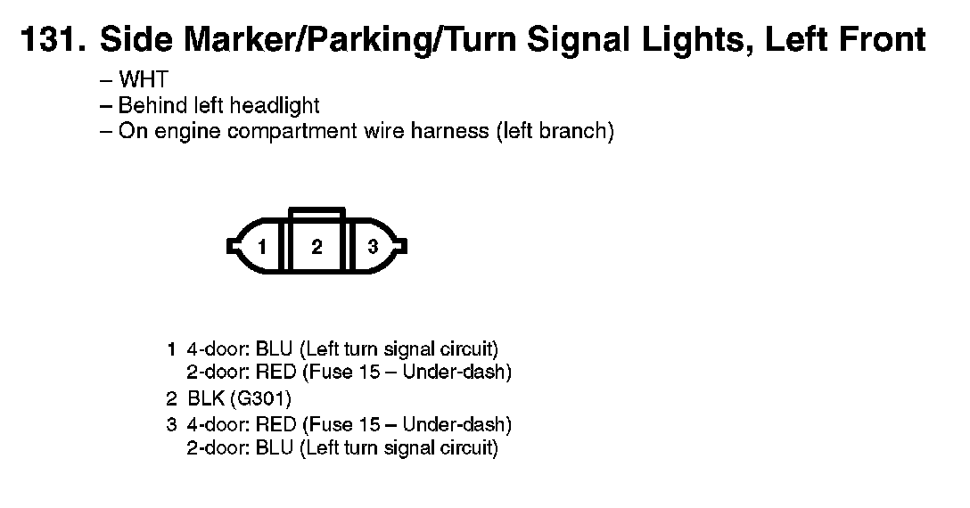 131. Side Marker/Parking/Turn Signal Lights, Left Front: