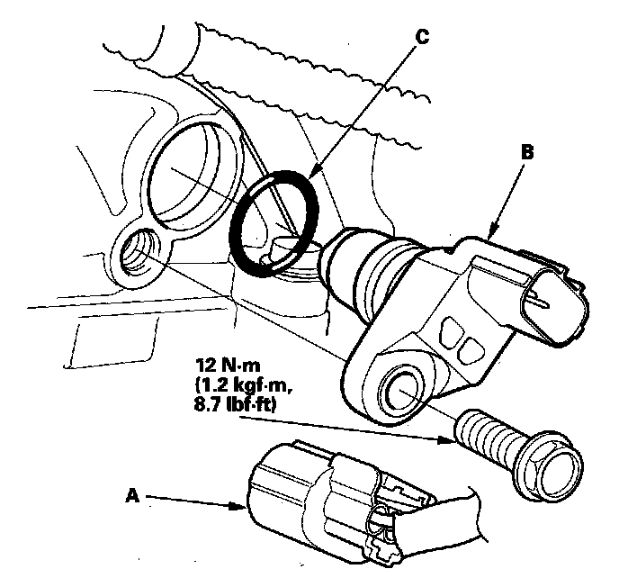 Install the parts in the reverse order of removal with a new O-ring (C).