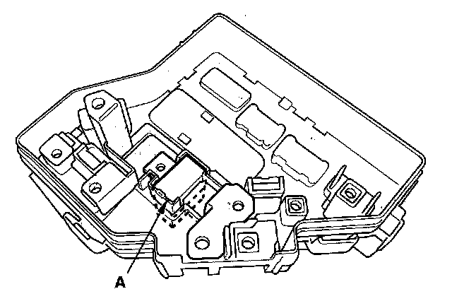 5. Turn the housing over again. Using two flat-tip screwdrivers, release the tabs (A), and pry up the fuse/relay box base (B) from the fuse/relay box housing (C).