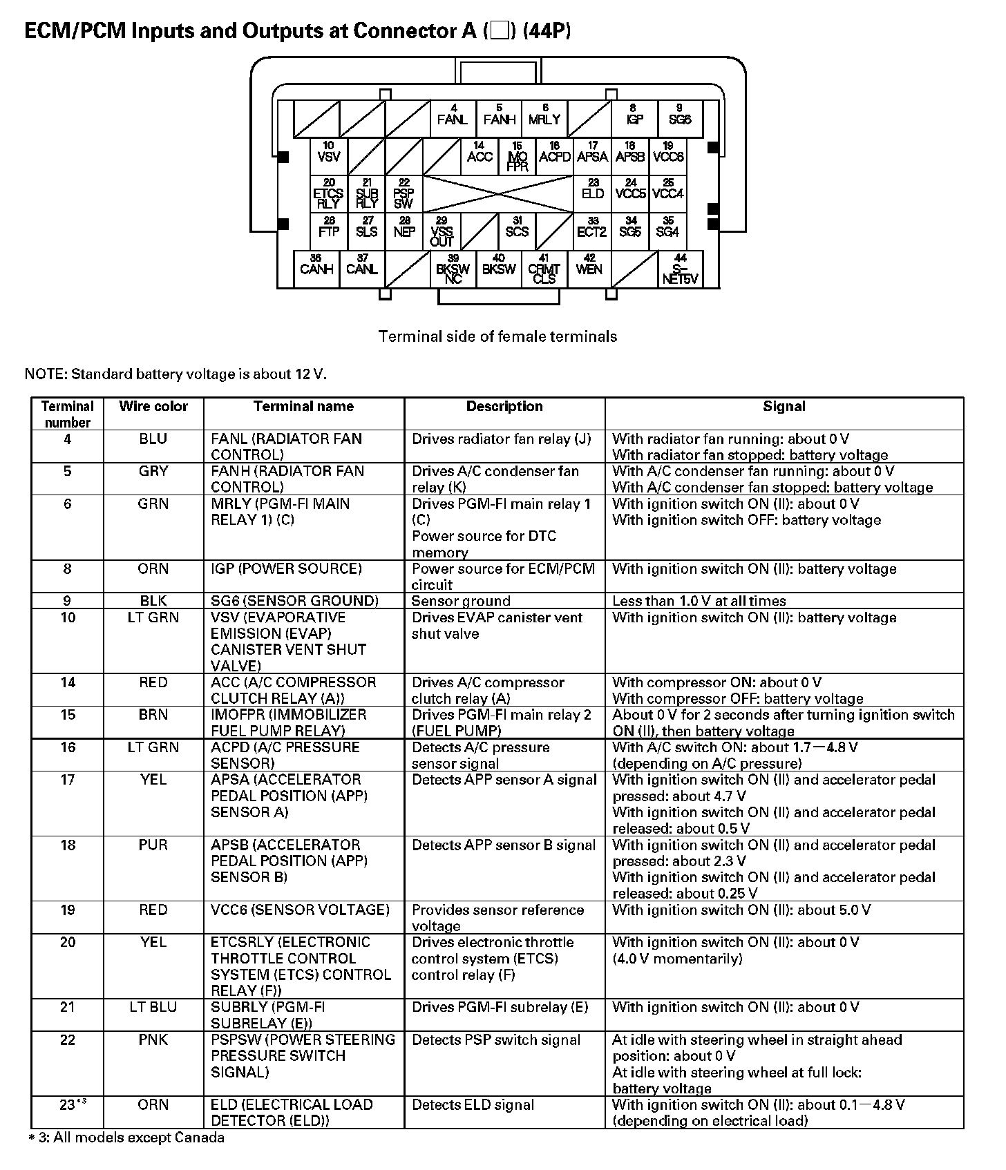 ECM/PCM Inputs And Outputs At Connector A (44P) (Part 3):