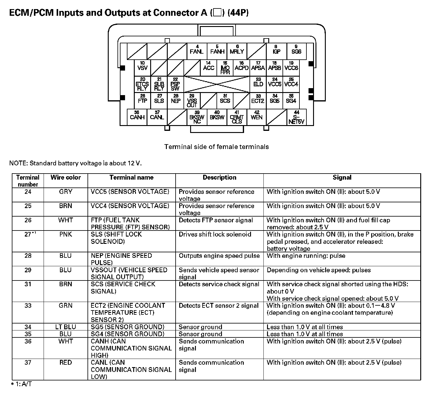 ECM/PCM Inputs And Outputs At Connector A (44P) (Part 1):