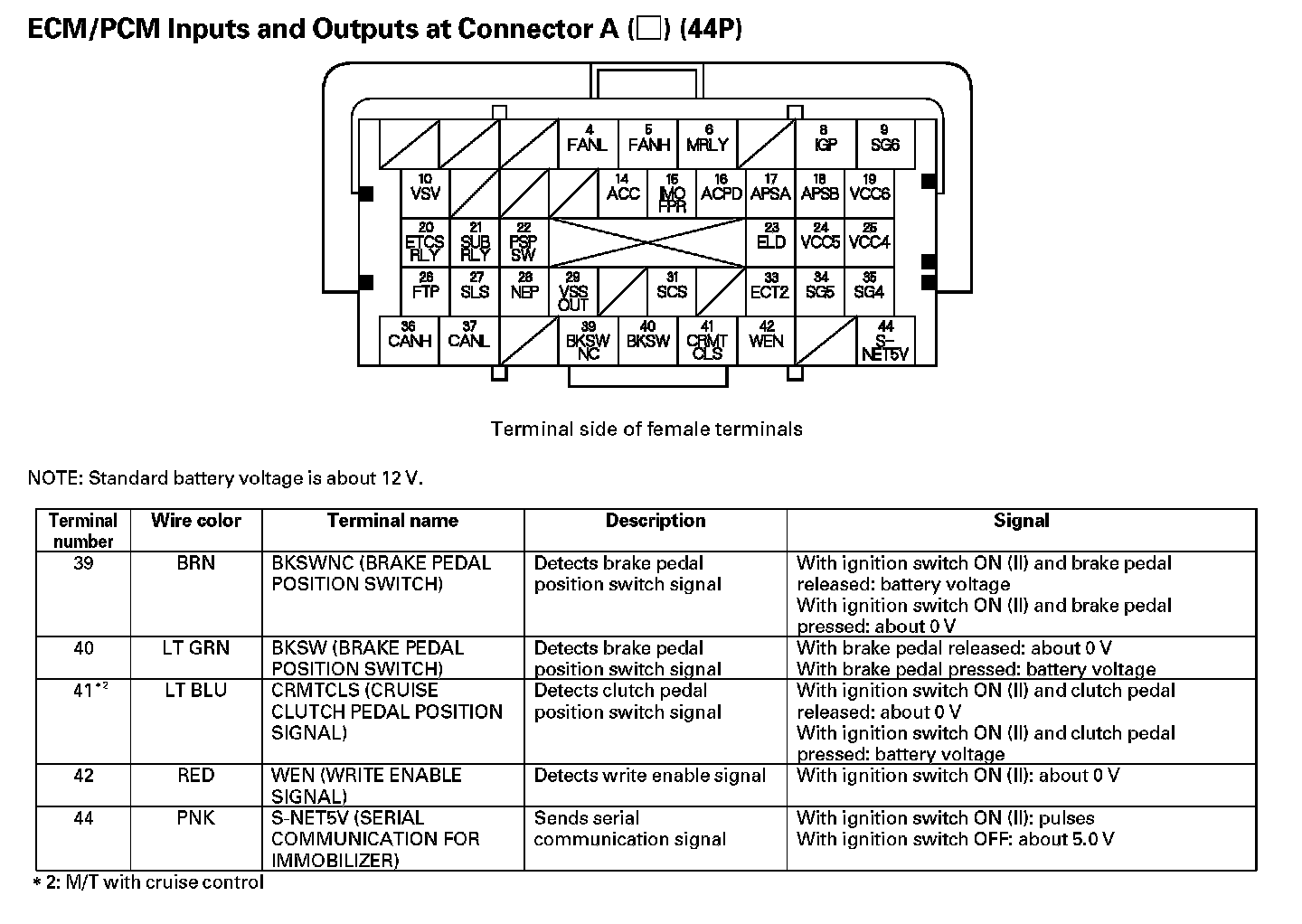 ECM/PCM Inputs And Outputs At Connector A (44P) (Part 2):