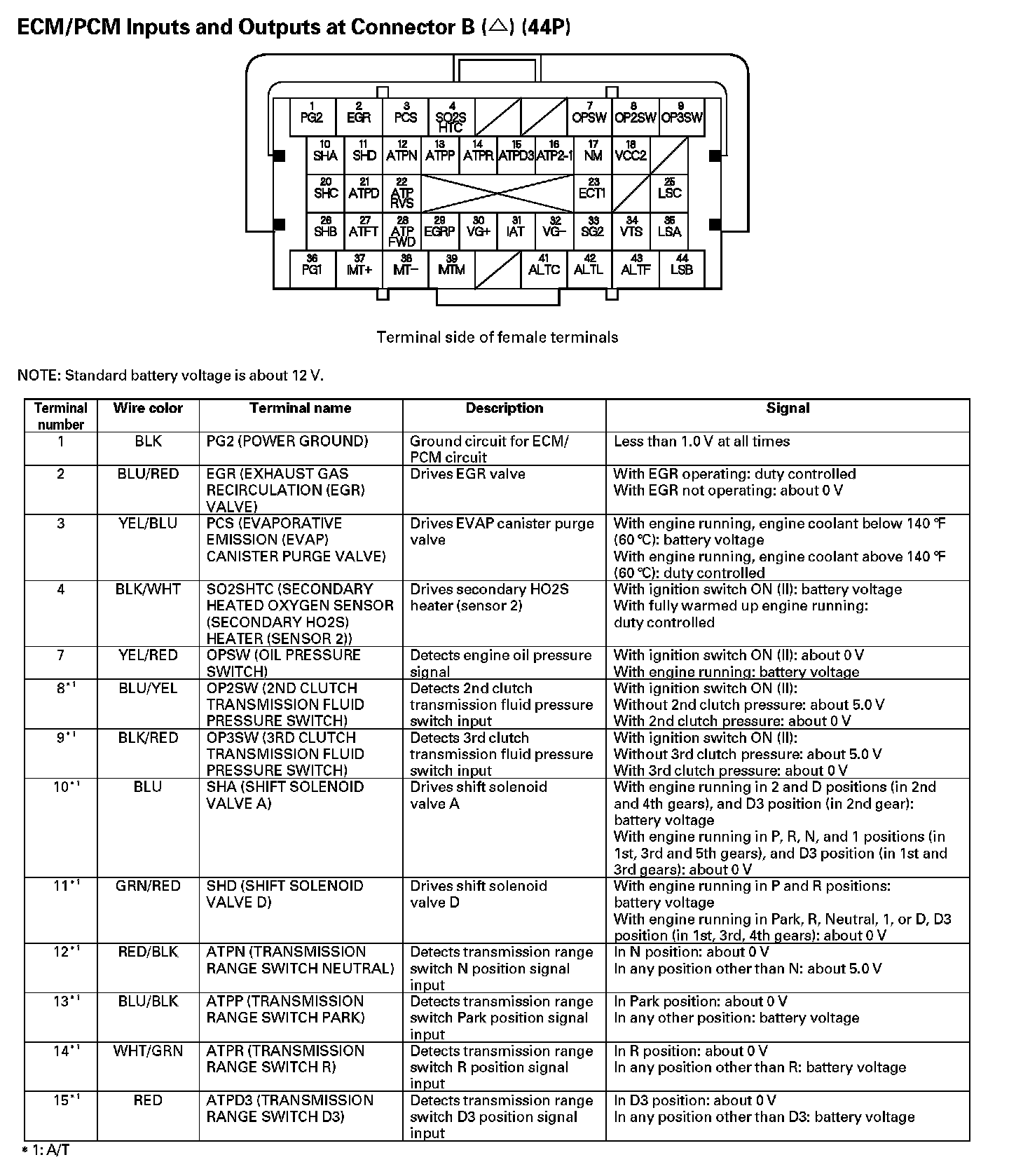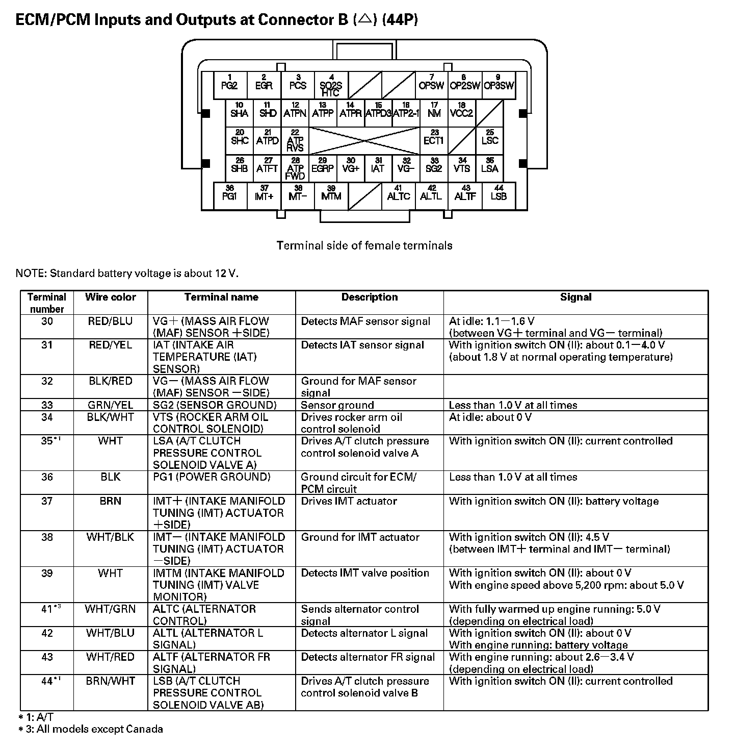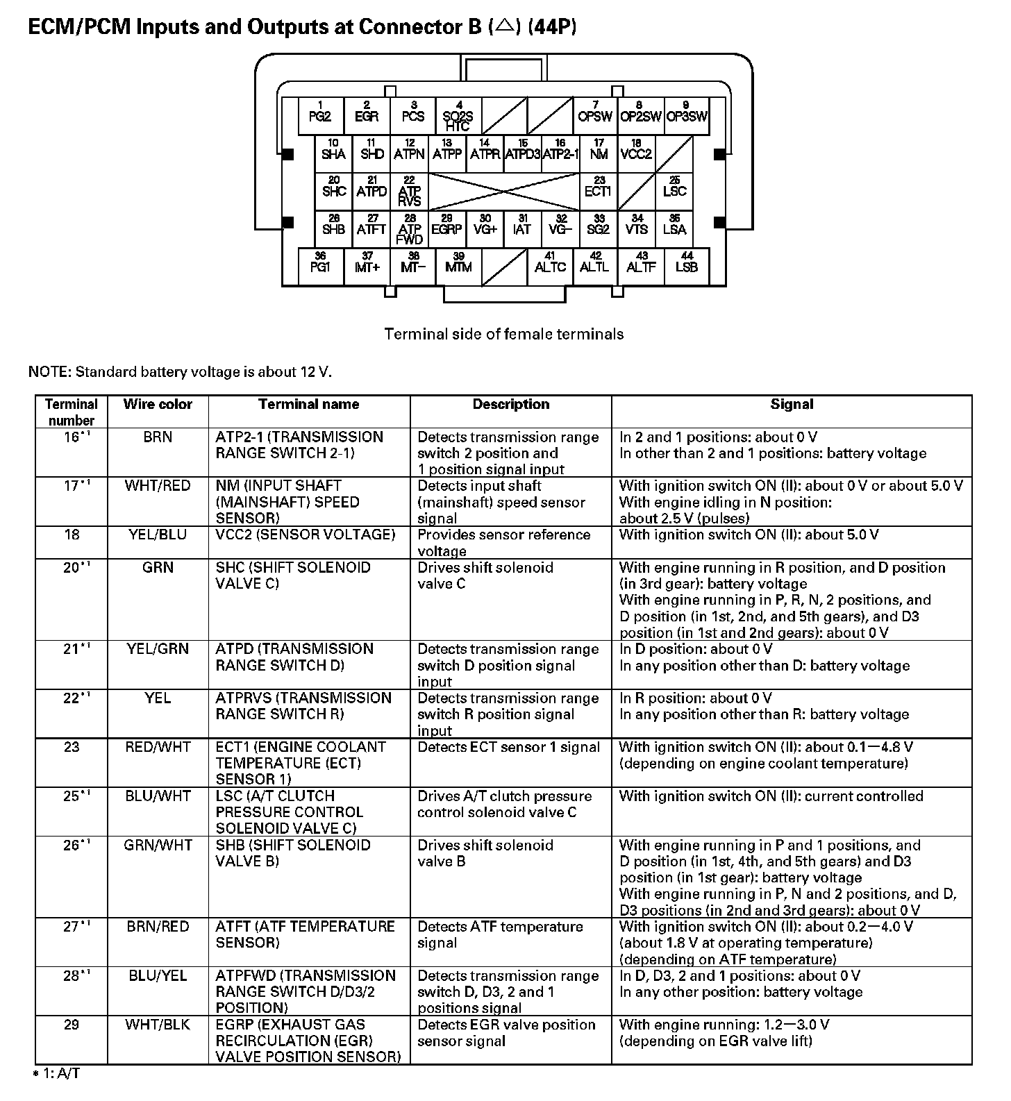 ECM/PCM Inputs And Outputs At Connector B (44P) (Part 1):