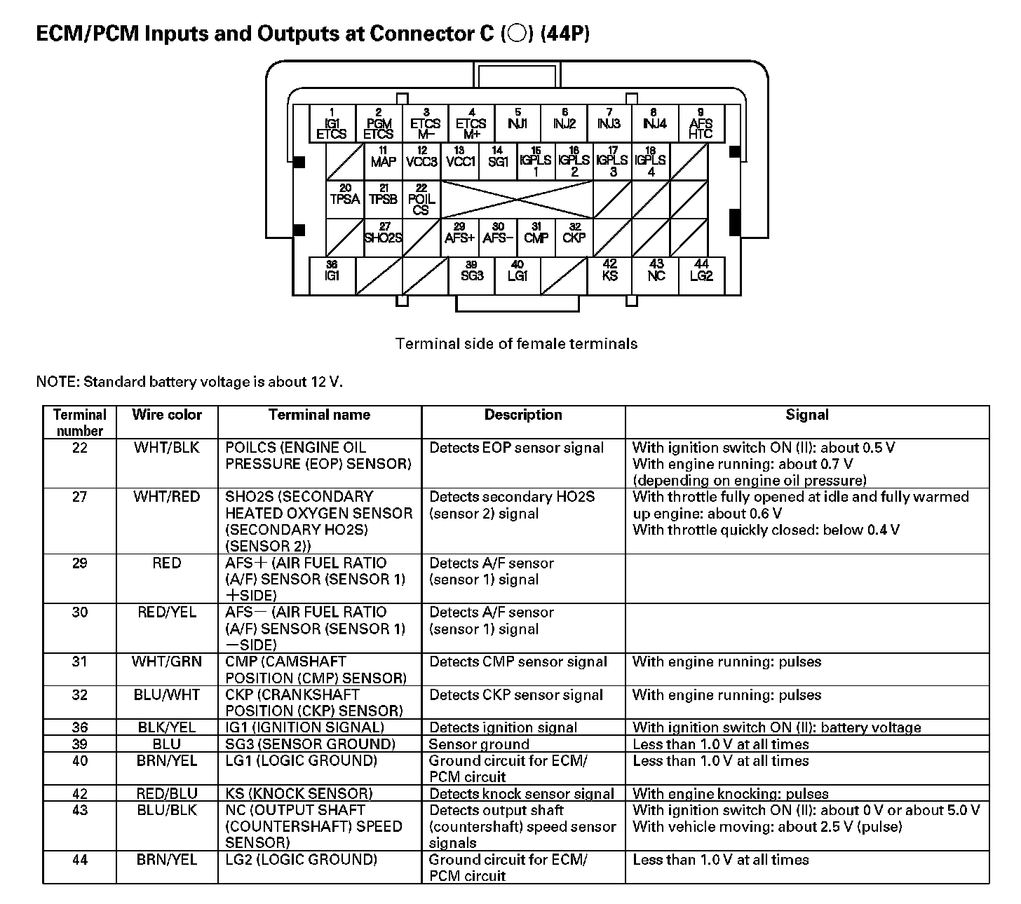 ECM/PCM Inputs And Outputs At Connector C (44P) (Part 1):