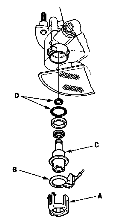 5. Install the parts in the reverse order of removal with new O-rings (D) and a new bracket. When installing the fuel tank unit, align the marks on the unit and the fuel tank.
