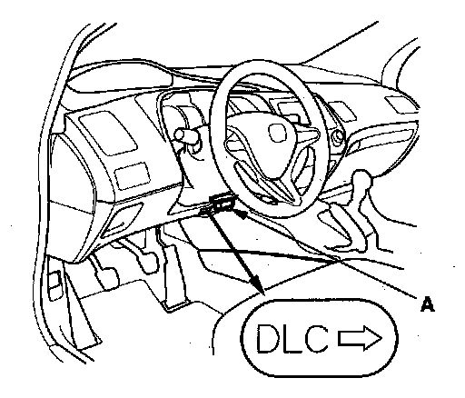 3. Connect the HDS to the data link connector (DLC) (A) located under the driver's side of the dashboard.