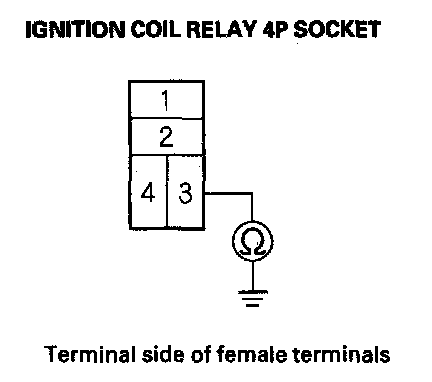 11. Check for continuity between ignition coil relay 4P socket terminal No. 3 and body ground.