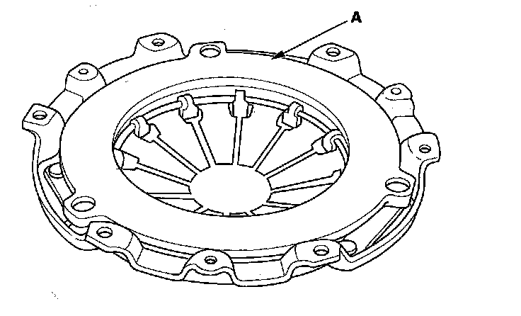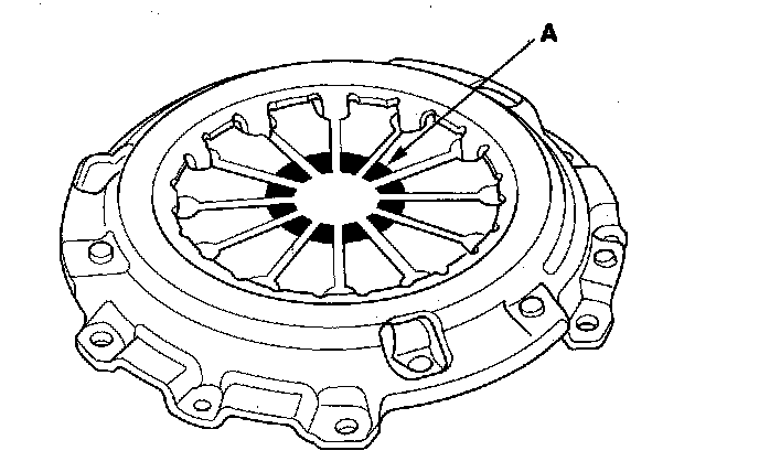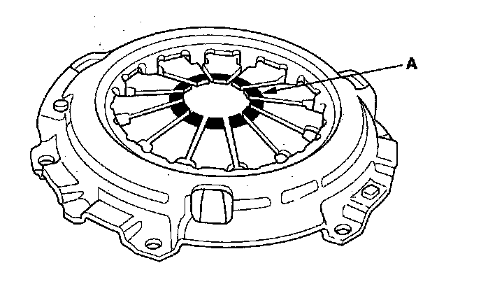 5. Inspect the fingers of the diaphragm spring (A) for wear at the release bearing contact area.