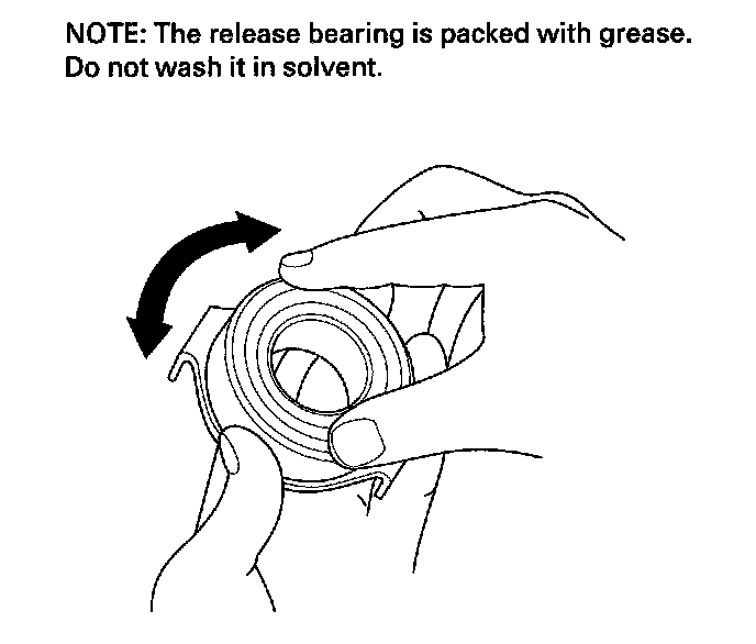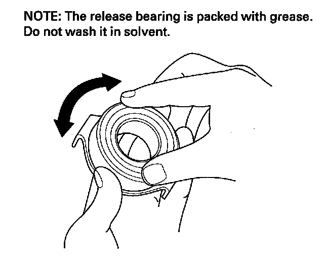 33. Check the play of the release bearing by spinning it with your hand. If there is excessive play or noise, replace the release bearing.