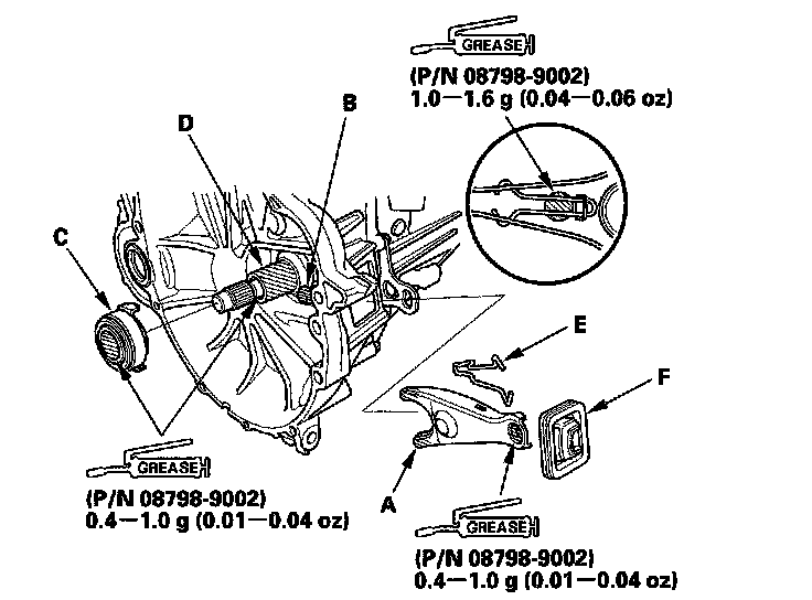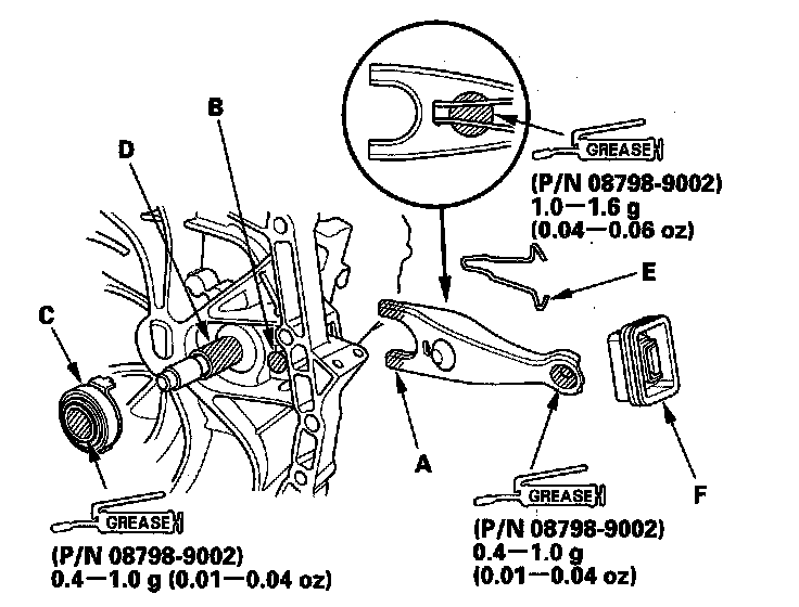 37. Install the release fork boot (F). Make sure the boot seals around the release fork and clutch housing.