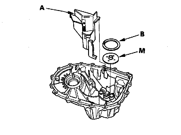 14. Remove the differential assembly (A) and the magnet (B).