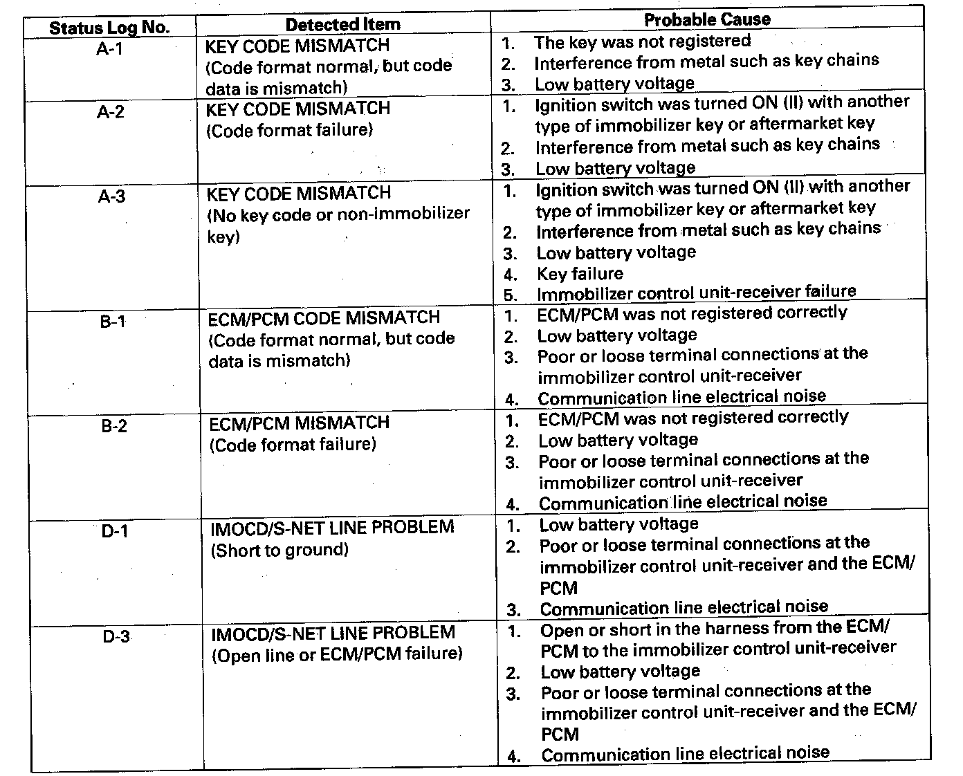 Status LogIf you suspect there is a immobilizer system problem, check the status log.