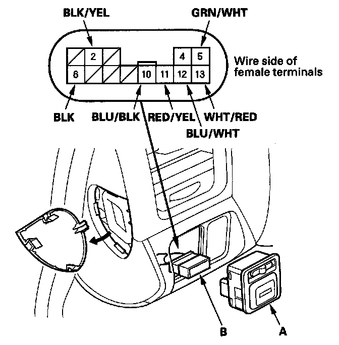 2. Disconnect the 13P connector (B) from the switch.