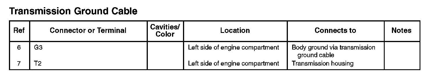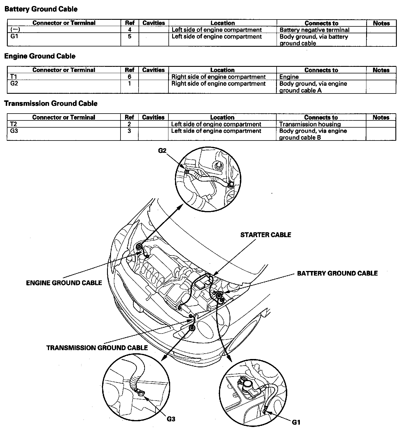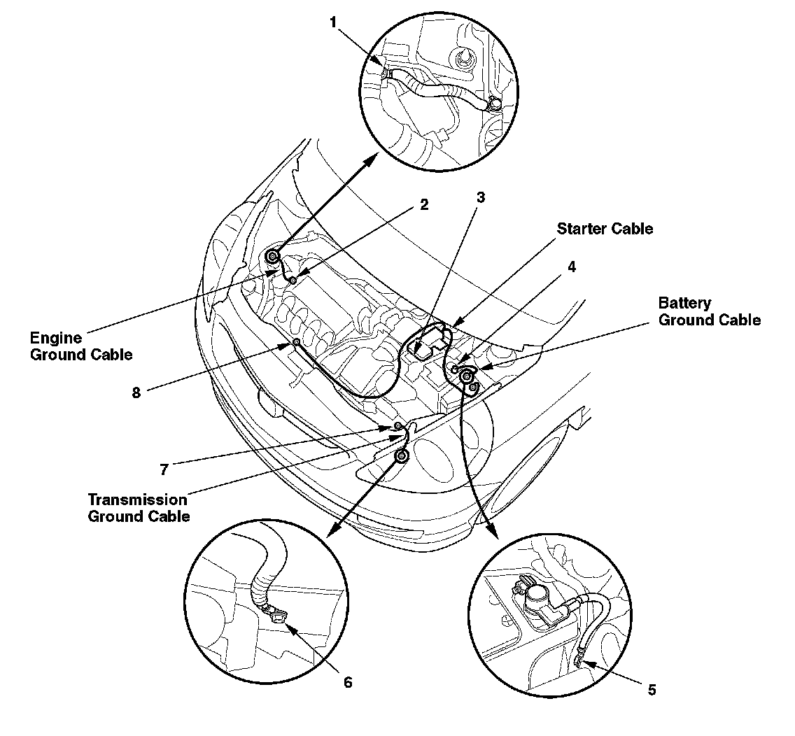 Battery Ground Cable/Engine Ground Cable/Transmission Ground Cable: