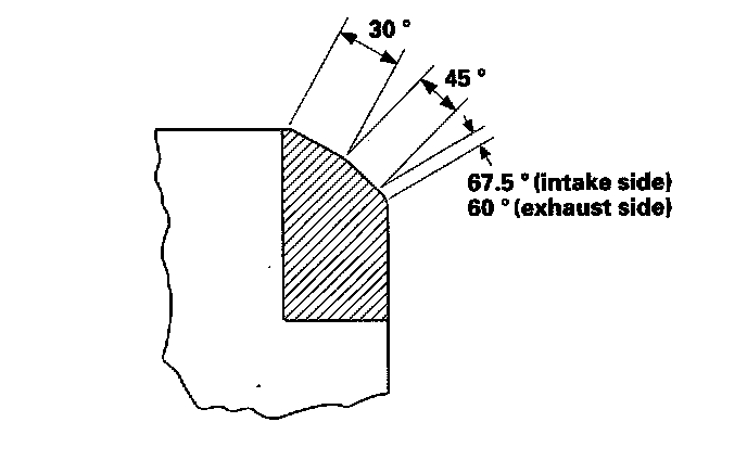^ If it is too high (closer to the valve stem), you must make a second cut with the 67.5° cutter (intake) or 60° cutter (exhaust) to move it down, then one more cut with the 45° cutter to restore seat width.