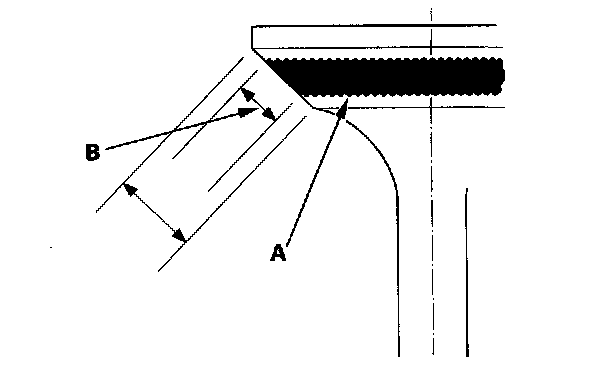 7. The actual valve seating surface (B), as shown by the blue compound, should be centered on the seat.