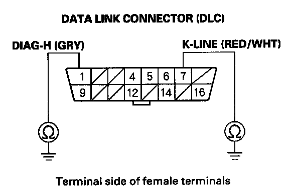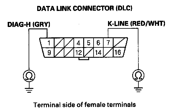 18. Check for continuity between body ground and DLC terminals No. 1 and No. 7 individually.