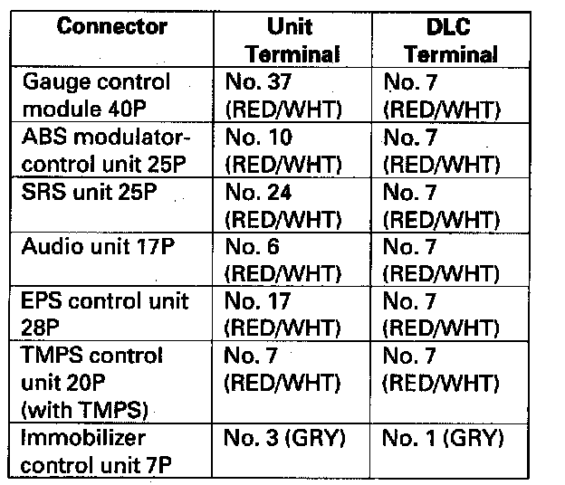 NO - Repair short in the wire between the DLC No. 7 (K-line) and the ABS modulator-control unit, the SRS unit, the audio unit, the EPS control unit, the TPMS control unit (with TMPS), or the gauge control module, or DLC No. 1 (DIAG-H line) and the immobilizer control unit.